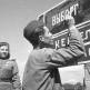 Советские танки Т-26 подразделения капитана Хомякова двигаются через деревню под Ельней