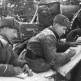 Красноармейцы переправляются в лодке через реку на синявинском направлении